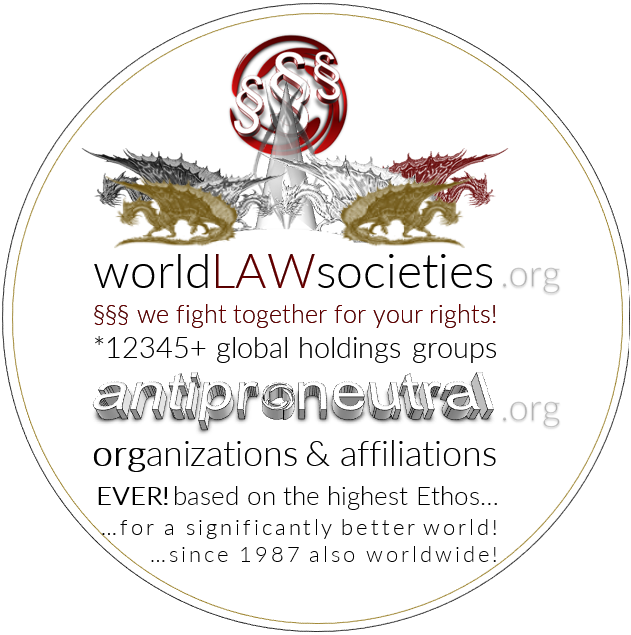 worldLAWsocieties §§§ we fight together for your rights! *12345+ global holdings groups antiproneutral organizations & affiliations • EVER! based on the highest Ethos! ...for a significantly better world! ...since 1987 also worldwide!